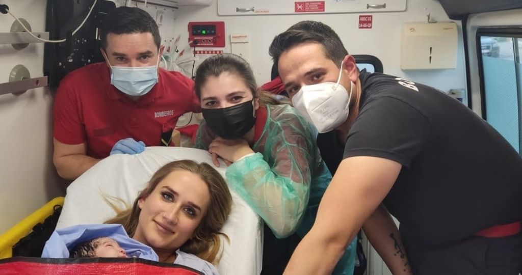 A mãe ia ser transportada para a maternidade do hospital de Setúbal, entrou em trabalho de parto quando os bombeiros chegaram ao local.